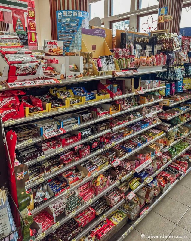 As most of our Taiwanese hotels were right next door to 7-Elevens (or other similar convenience stores), we’d often roam the Taiwan 7-Eleven aisles day and night to see what Taiwan snacks we could find.